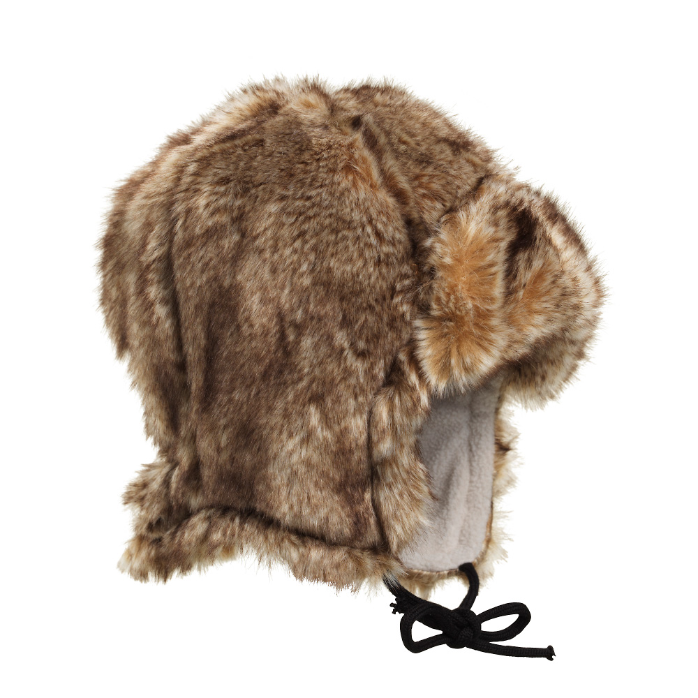 Čepice z nové kolekce je vyrobena z načechrané umělé kožešinky. Čepice má šňůrky na zavázání pod krkem .Podšívka je vyrobena z bavlny.