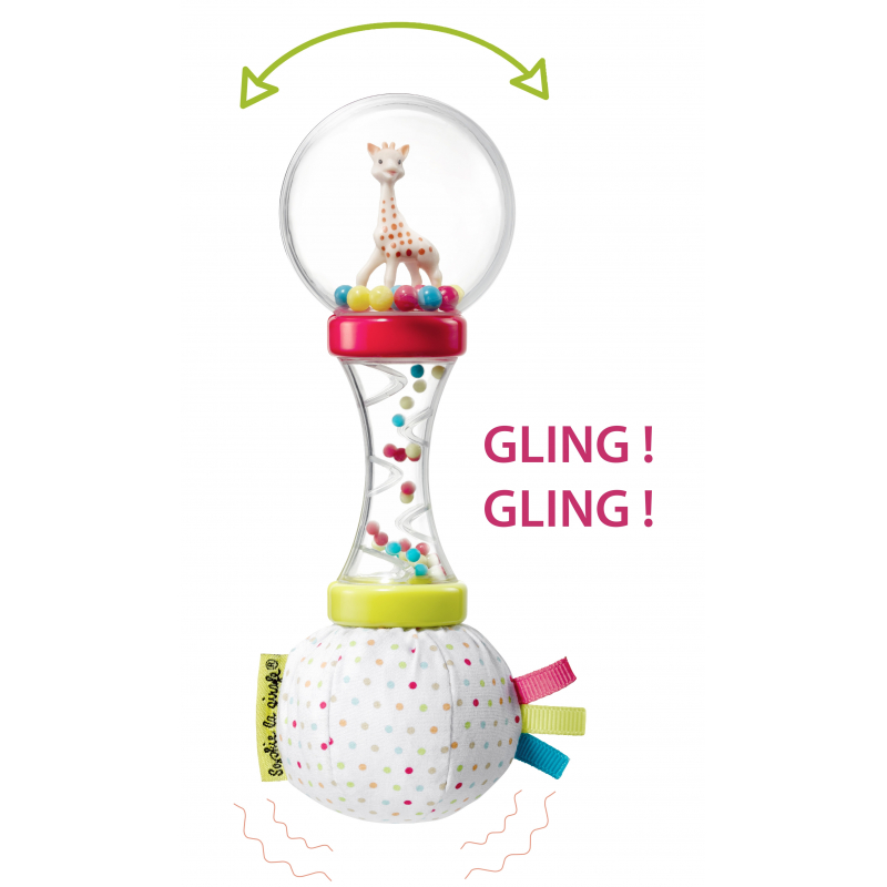 Zábavná hračka - dítě zatřese a pozoruje a poslouchá různobarevné kuličky točící se kolem žirafky Sophie.