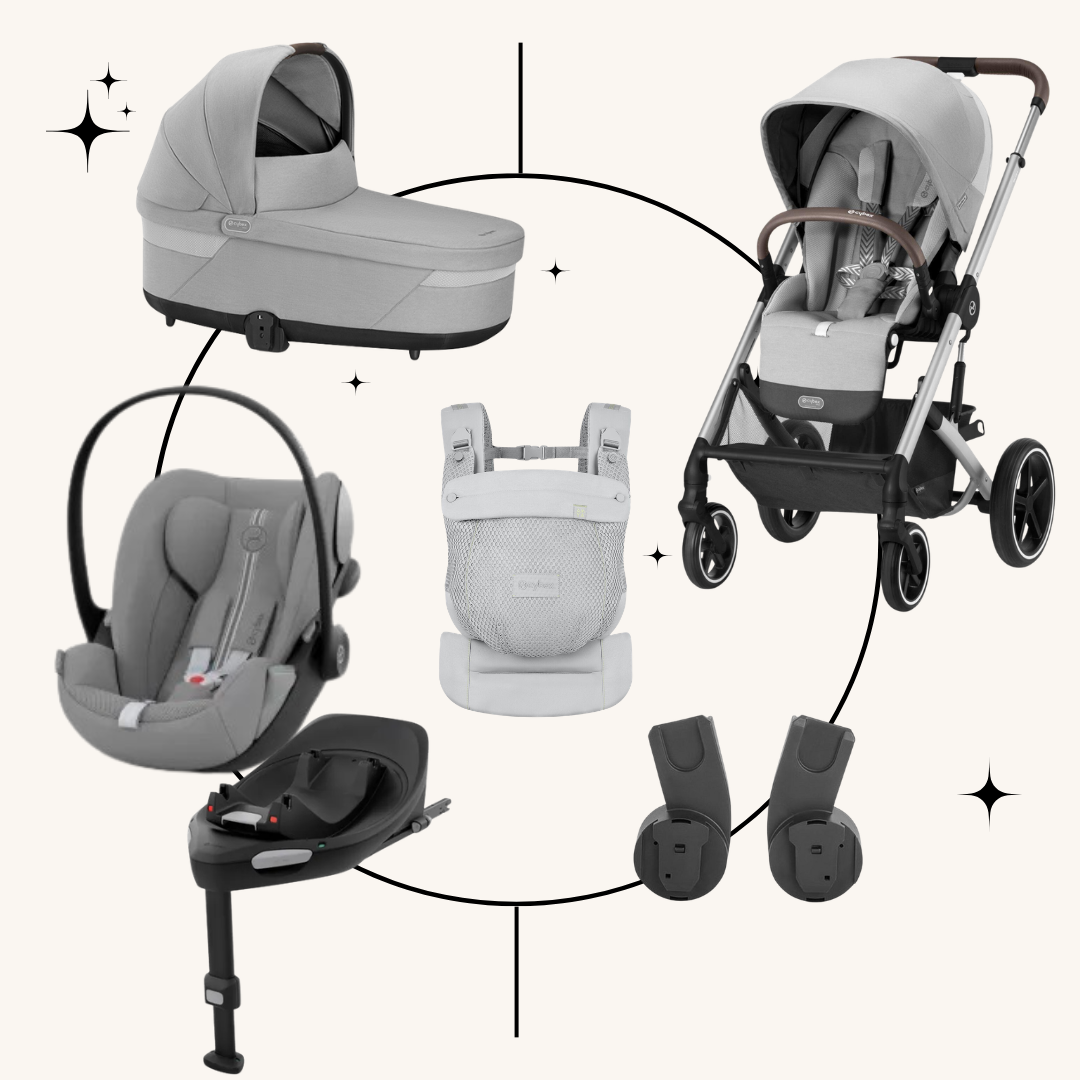 Set kočárku Cybex Balios S Lux s hlubokou korbičkou, adaptéry, autosedačkou Cybex Cloud G i-Size Plus, otočnou isofix bází Cybex Base G, nosítkem Cybex Amya Obsah setu:
