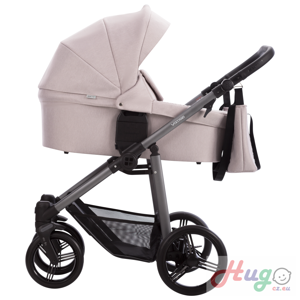 Vulcano je lehký univerzální kočárek, který spojuje nejlepší technické řešení z modernímy materiály. Model je vybaven plastovou spodní části korbičky opatřenou regulací opěrky a přídavným ovládáním odvětrávání vnitřku korbičky, který umožňuje přirozenou cirkulaci vzduchu. Moderní lehká hliníková konstrukce
