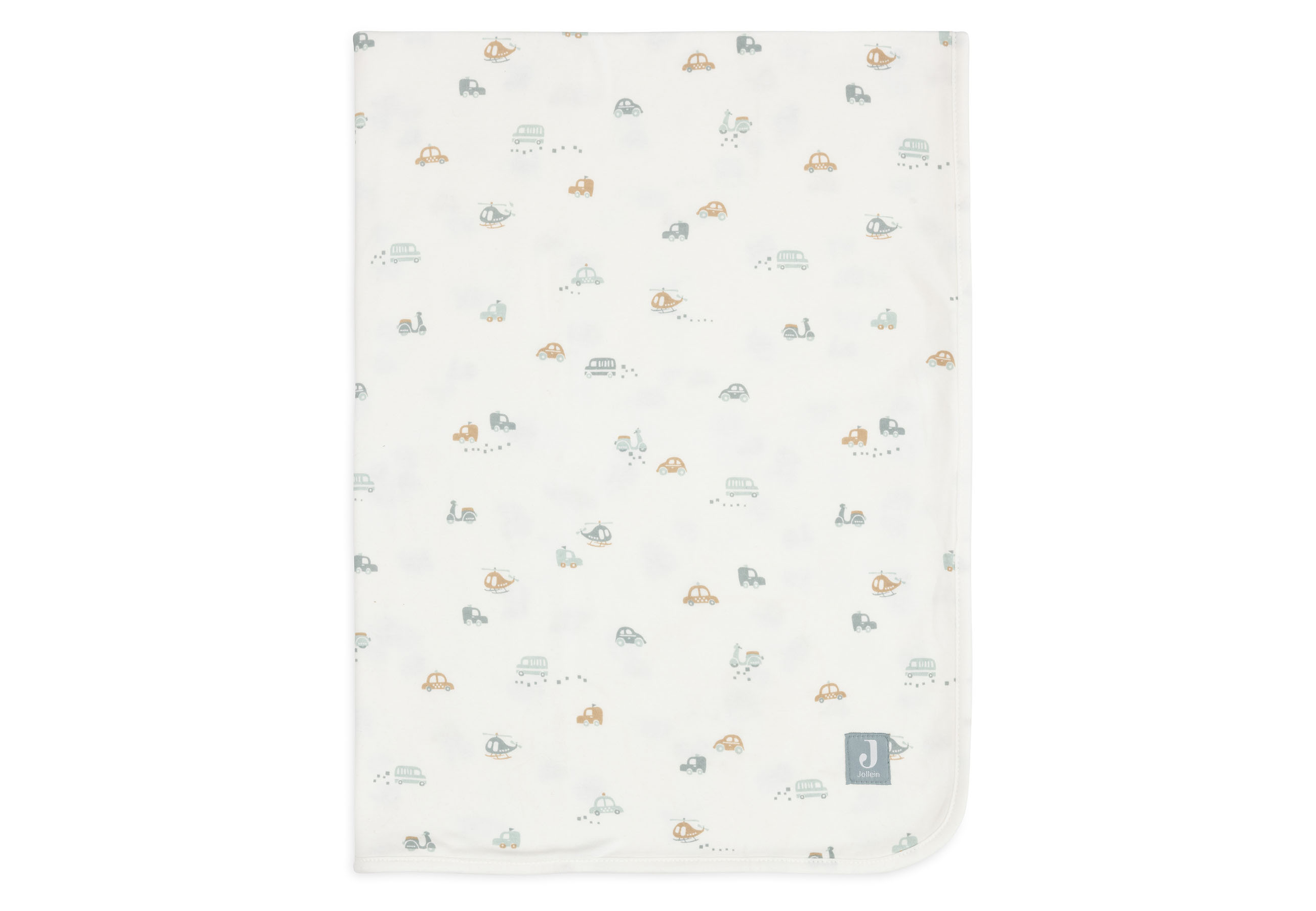 Měkká bavlněná deka s krásným potiskem dopravních prostředků je ideální pro přikrytí miminka v kočárku, kolébce či košíku.