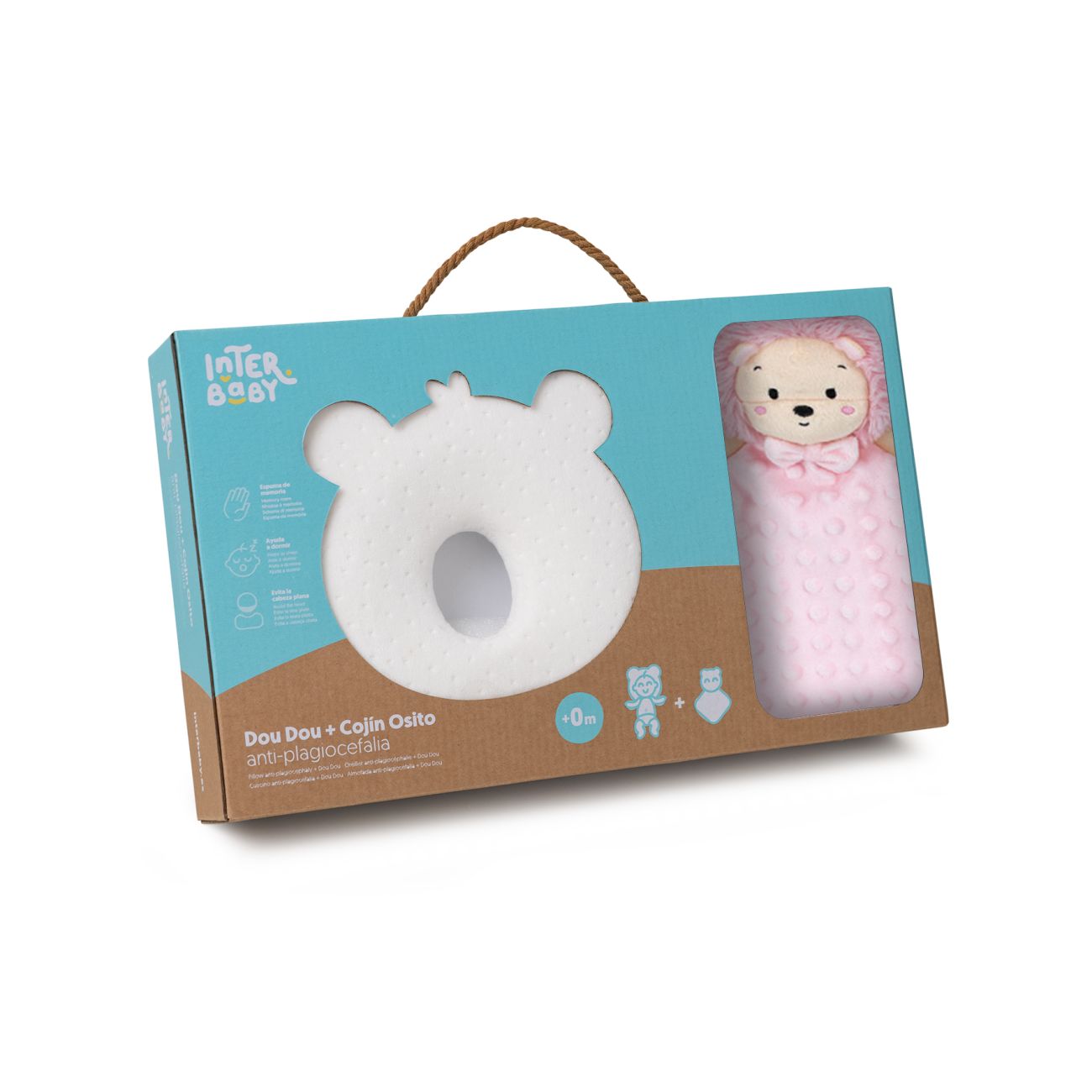 INTERBABY | SET MÉĎA - ergonomický polštářek + přítulka - růžový