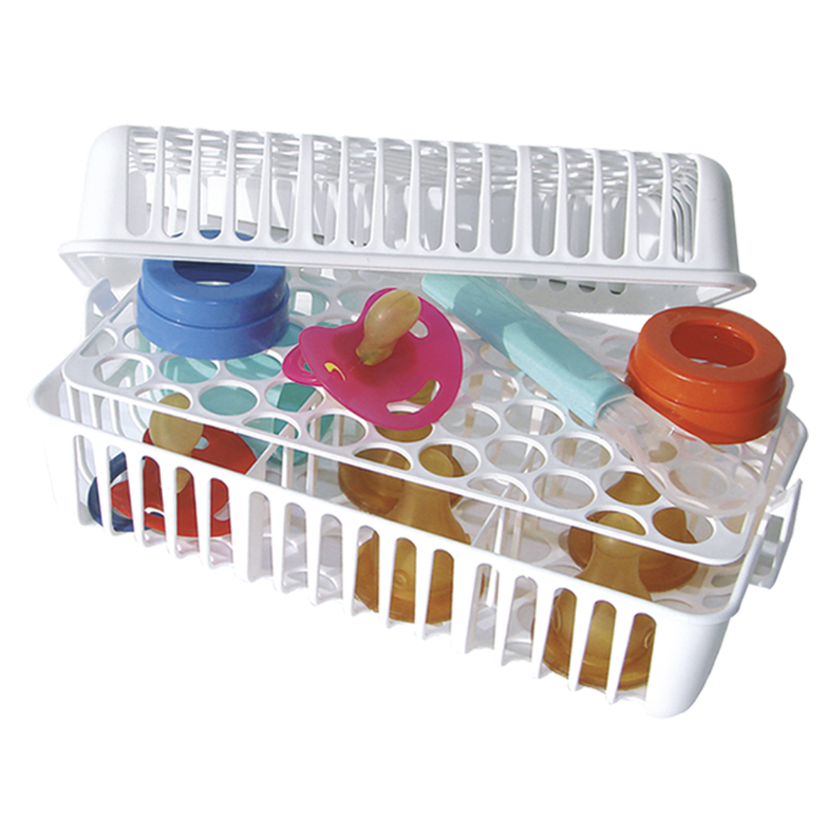 příslušenství dětských lahviček a dudlíků, které tak v myčce umyjete s