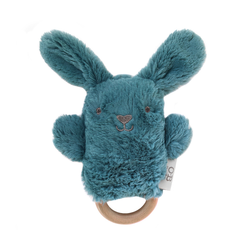 OB Designs Plyšové chrastítko králíček, Duck Egg Blue
