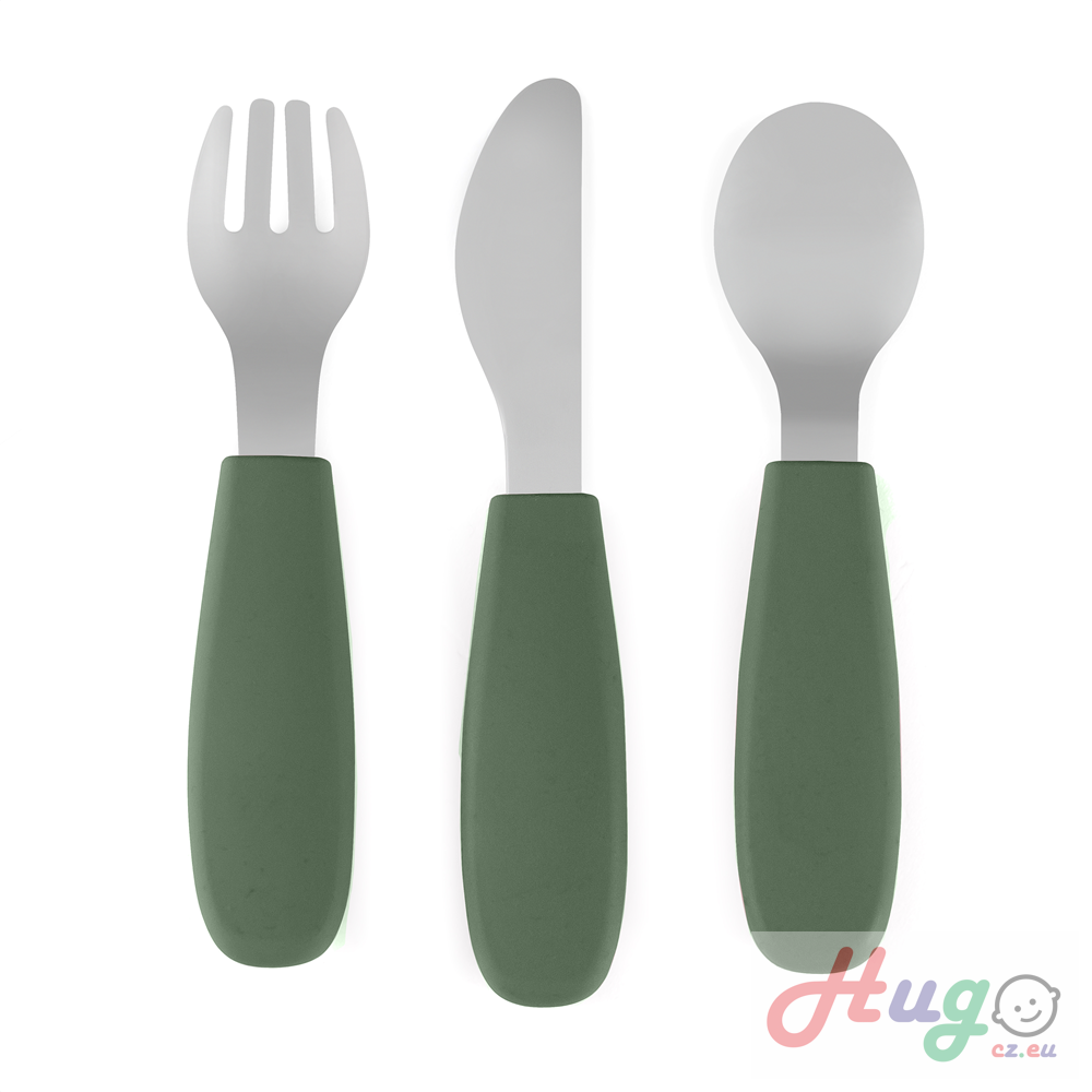 - Kompletní sada – 3 kusy: lžička, vidlička a nůž bezpečný pro děti