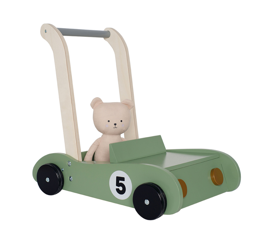Drevené detské chodítko Jabadabado je dokonalým spoločníkom pri prvých krokoch vášho dieťatka. Chodítko obsahuje aj kamaráta - Macka alebo Zajačika. Chodítko poskytuje stabilnú a bezpečnú oporu aj malým deťom, ktoré práve začali chodiť, keďže má nastaviteľné brzdy na zadných kolesách. K dispozícii je tiež inteligentný vstavaný úložný priestor, pretože veko sa dá odobrať a pod ním nájdete perfektný úkryt pre všetky svoje obľúbené hračky. Kolesá majú gumený krúžok, takže nezanechávajú stopy na podlahe. Chodítko je ideálny darček, s ktorým sa dá dlho hrať a skvele sa hodí ako darček ku krstu alebo k prvým narodeninám.