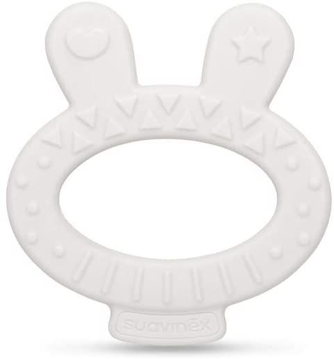 Silikonové kousátko ve tvaru králíčka s drobnými výstupky pro úlevu pro dětské dásně v praktickém boxu pro hygienickou přepravu. Evoluční kousátka jsou bezpečná, ergonomická, lehká a velmi zábavná.