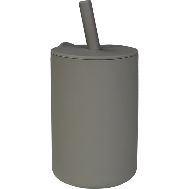 TRYCO Silikonový pohárek s brčkem, Olive Gray