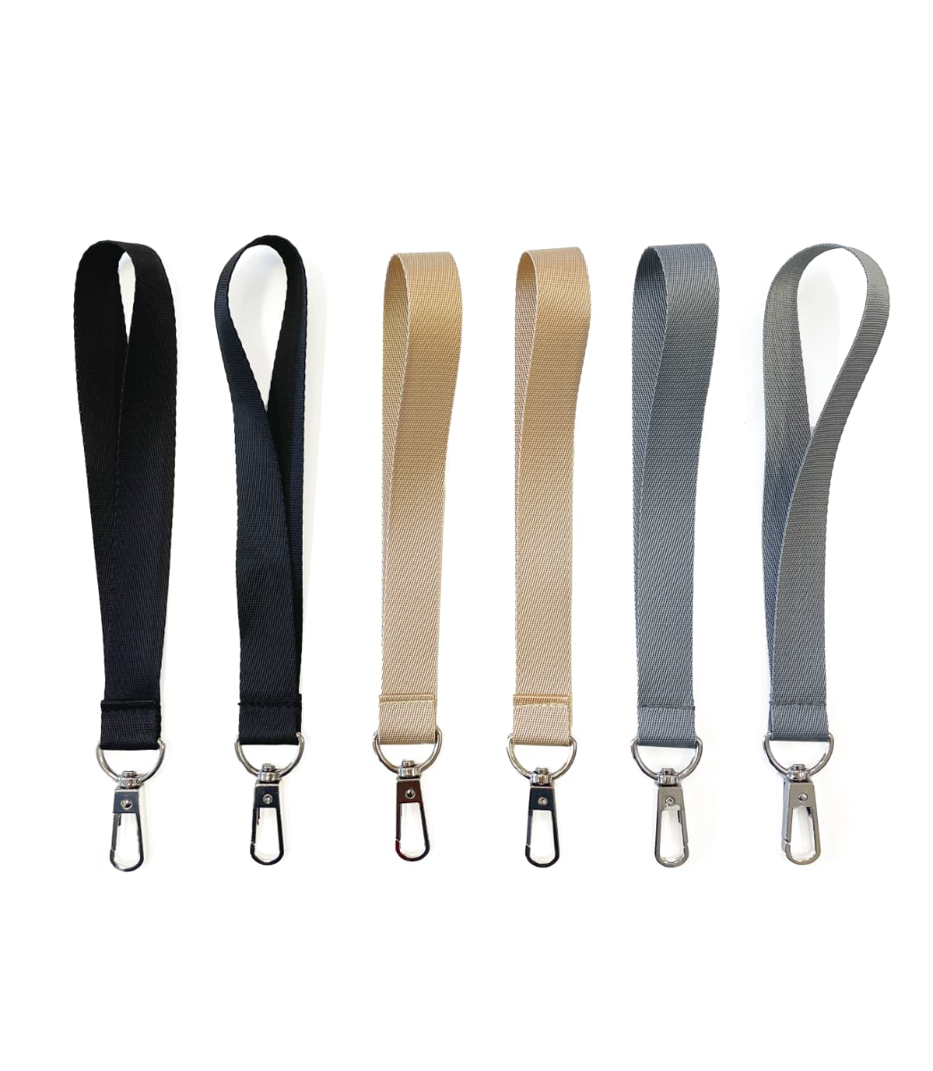 Pásky s karabinkami, které slouží k uchycení tašky nebo kabelky na madlo kočárku.