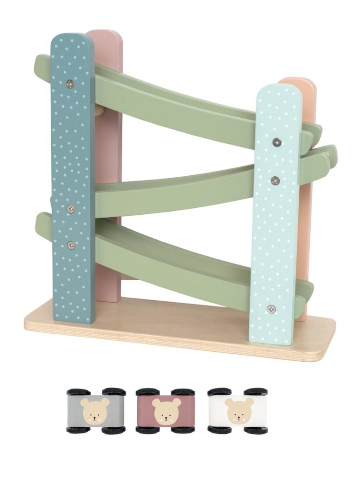 Kreatívna a zábavná závodná dráha pre malé deti. Nechajte autá ísť na vrchol trate a uvidíte, ako rýchlo pretekajú celú cestu dole. Stimulačná a zábavná závodná dráha, ktorá udržiava vaše dieťa aktívne po dlhú dobu. Súťažte so svojimi priateľmi a zistite, ktoré auto zostupuje najrýchlejšie. Je nutnosťou pre všetkých malých pretekárskych vodičov. Trať má 3 sprievodné vozidlá v rôznych odtieňoch a farbách.